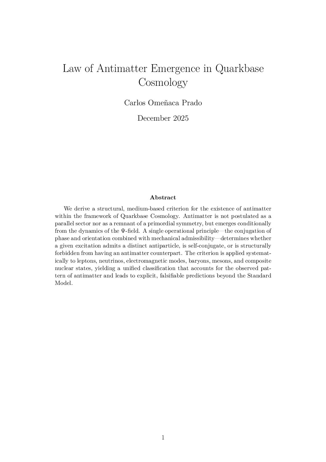 - https://www.academia.edu/145483615/Law_of_Antimatter_Emergence_in_Quarkbase_Cosmology